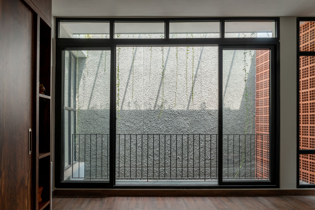 Mangal Veedu, a minimalist residence in Hosur, features a large white facade, maximizing natural light and indoor-outdoor connectivity. Highlights include a double-height living area, glass-covered courtyard, ventilated Vengai wood door, "Zik Zak" steel safety grill, uPVC windows, and a neutral color palette, emphasizing simplicity and functionality throughout.